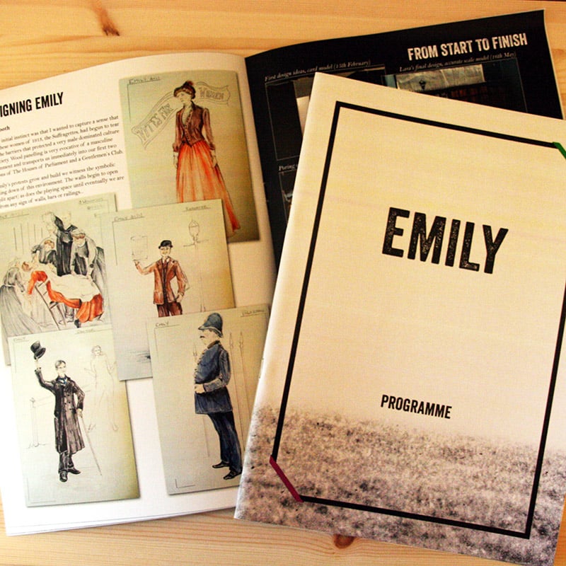 The Emily programme features 30 full-colour pages and is approximately A4 (portrait) in size.